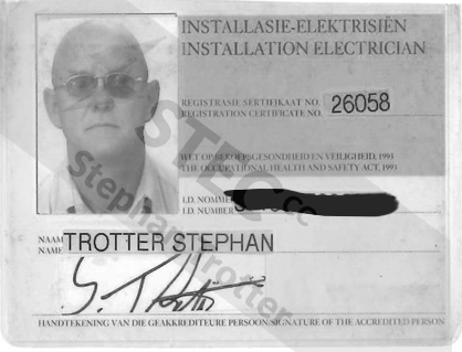 Stephan Trotter- Installation Electrician – Stephan wrote the examination for his ‘wireman’s license’ as an Installation Electrician in 2004 and passed.