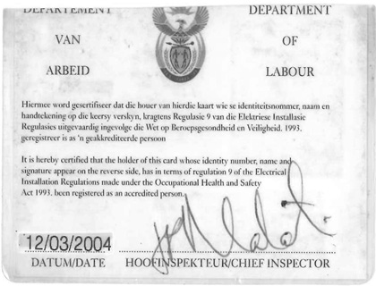 A registered person will keep himself up to date with changes in the installation regulations and safety standards pertaining electrical installations.